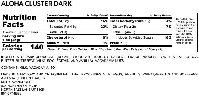 I ordered the Aloha Cluster for a birthday gift. It came quickly and very well secured with ice packs. They did a great job fulfilling my request for gift wrap. My friend absolutely loved the chocolates and shared with me. Wow, so delicious!!! Everything about this order was beyond my expectations.