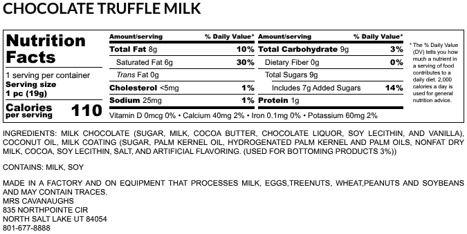 The milk chocolate Truffles are to die for! I sent my Sister three pounds of them for Christmas! I am sure they were gone in lightning time. Such good chocolate! Thank you for your wonderful candy! What a hit in the gift department! 5 Stars+!!!! Jan Dodd