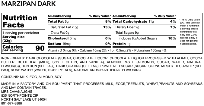I sent this to my sister who loves Marzipan but never had it dipped in chocolate. She loved them and so did my brother-in-law who tried Marzipan for the first time. They said to thank Mrs. Cavanaugh.. So thanks You!