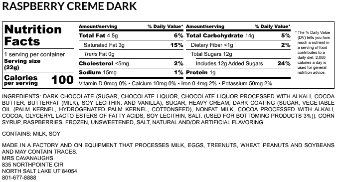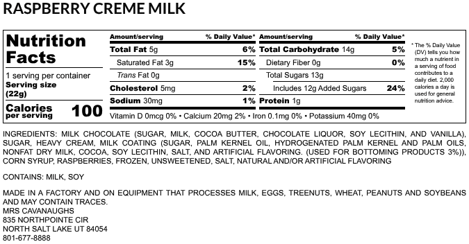 I have never tasted a better raspberry cream chocolate. The milk chocolate just melts in your mouth and together with the raspberry cream it’s shear perfection. NOTHING BEATS MRS. CAVANAUGH’S chocolates and confections. These are the absolute best ever and a raspberry chocolate is my favorite and I choose these raspberry cream chocolates over any other.