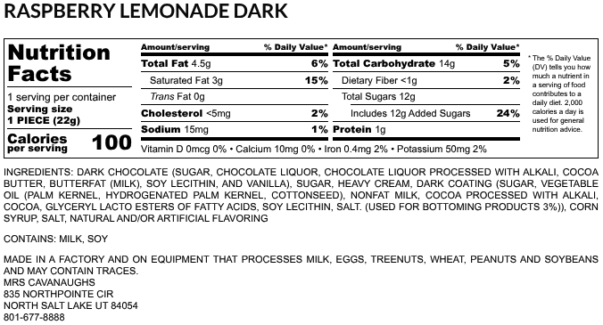 Our Raspberry Lemonade Creme Chocolates are made from scratch with thick whipping cream and fresh ingredients. We craft these creams the old-fashioned way and don't take shortcuts with just-add-water mixes - you will taste the difference!