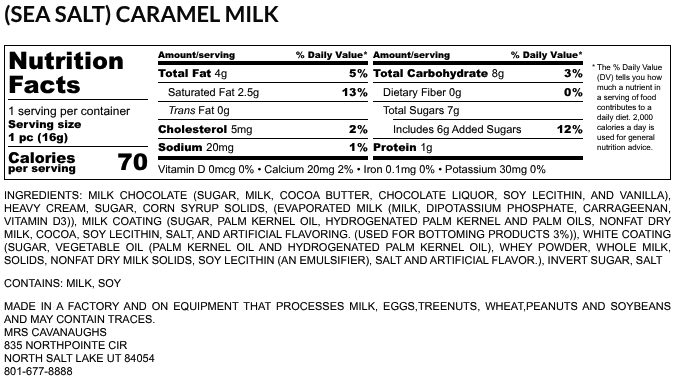 These are some of the BEST dark Chocolate caramels, I have ever eaten! Perfect texture, great chocolate, hint of sea salt. Perfect!! Will order again!!
